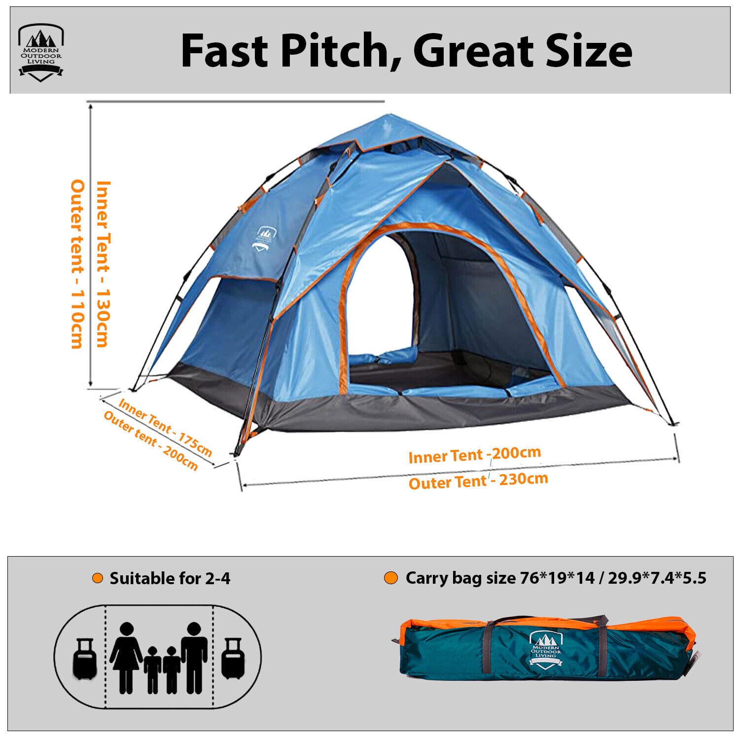 Experience effortless camping with the 2-4 Person Lightweight Pop-up Dome Tent – the perfect fast-pitch, waterproof solution for festivals, beaches, and outdoor adventures. Designed to comfortably sleep 2–4 people, this durable pop-up tent features an automatic pitching mechanism and a robust yet lightweight aluminium frame, allowing you to set up or pack away in under 60 seconds.