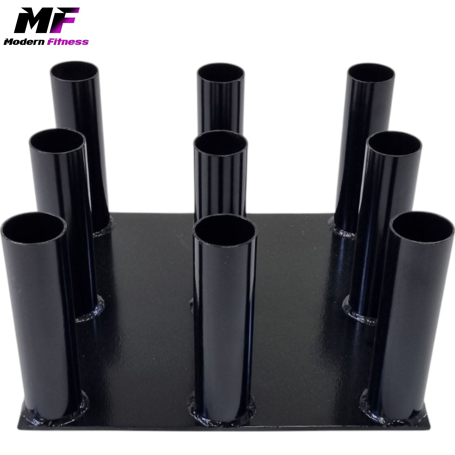 Storage Capacity: 9 holes for Olympic barbells (50mm sleeves)