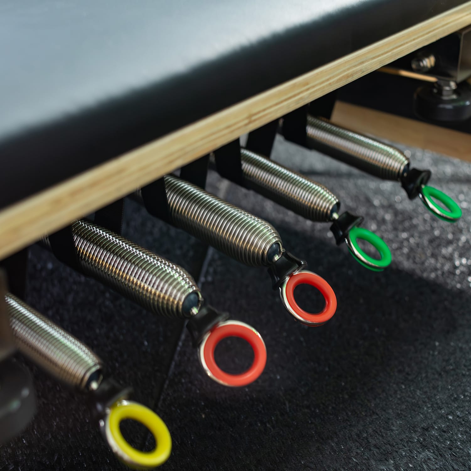 Adjustable Resistance: Five chrome springs (2x Red: 6–22.5kg, 2x Green: 4.5–13.5kg, 1x Yellow: 2–8kg)
