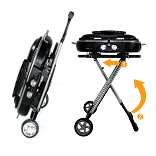 SUITCASE DESIGN: Cool, unique style, folds together and comes with a large handle and two wheels – the freestanding barbecue is easy to take with you wherever you want – to friend’s gardens, parks and other outdoor areas.